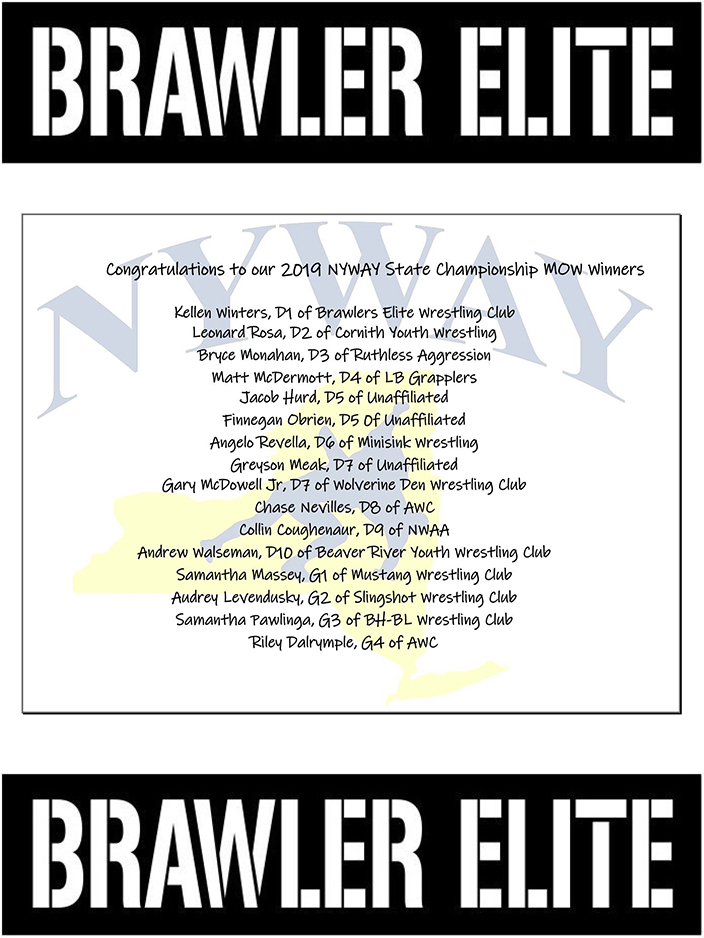 Kellan was so determined to win the NYWAY State Championship. He wrestled so hard that he was rewarded with the 2019 D1 NYWAY State Championship Most Outstanding Wrestler Award.