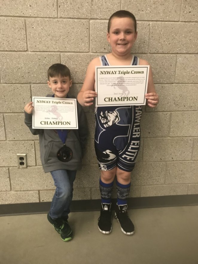 The 2019 NYWAY Triple Crown was awarded to wrestlers who took 1st at these three 2019 NYWAY Major Tournaments: '2019 NYWAY State Championships', '2019 Gene Mills Eastern Nationals' and '2019 G2 King Of The Mat Spring Nationals'.