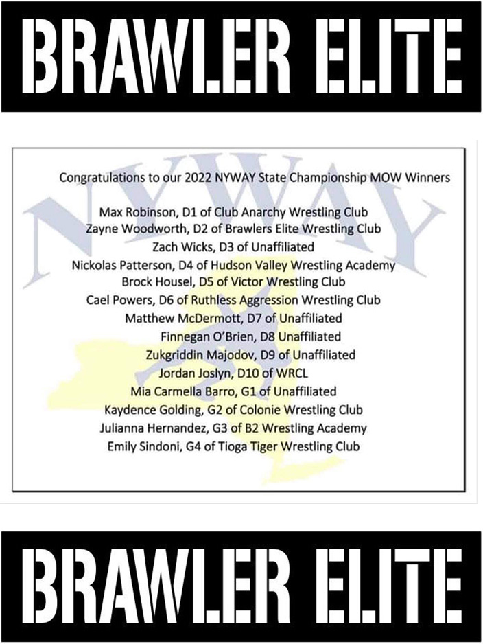 Zayne Woodworth not only brought home the 2022 NYWAY State Champion, he also brought home the 2022 D2 NYWAY State Championship Most Outstanding Wrestler Award.