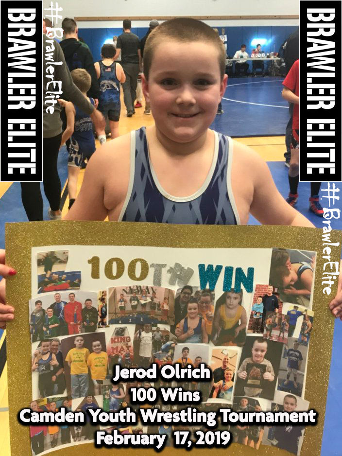 Jerod hit the 100 win milestone at the Camden Youth Wrestling Tournament on February 17, 2019. Very few have the heart and determination that Jerod has! Congrats Jerod on your 100th win!